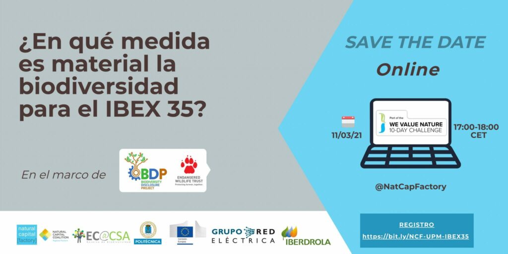 En este webinario, organizado en colaboración con Ecoacsa y la Universidad Politécnica de Madrid (UPM) en el marco de We Value Nature 10-Days Challenge, se presentarán los resultados del análisis realizado por ambas entidades a las empresas españolas que cotizan en el IBEX 35 sobre su desempeño en materia de divulgación de información relacionada con la […]